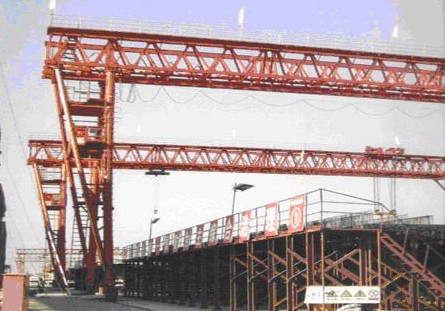 5.预埋件施工,上层基础浇筑之前,沿龙门吊轨道轴线方向间距80cm预埋Φ12mm钢筋用于门式起重机轨道扣轨。